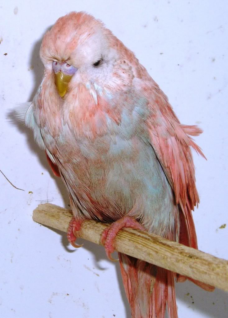 Potrebbe essere stato nutrito col colorante che si usa per i canarini rossi? (guardando le zampe mi sembrano di un rosa troppo accso)